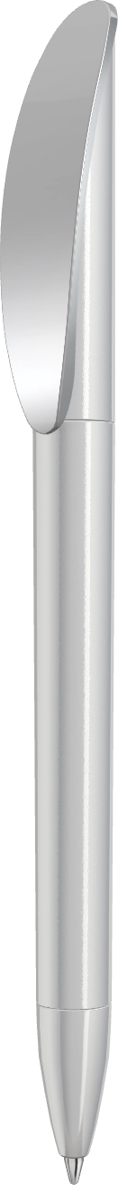 Drehkugelschreiber mit transparent gefrostetem oder gedeckt mattem Gehäuse, Bogenclip silber matt und schwerer Metallspitze matt verchromt.
