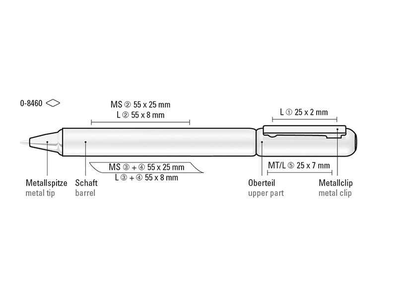 Metall-Drehkugelschreiber mit matt lackiertem Aluminiumschaft und Metallbeschlagteilen.