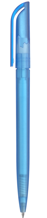 Stylo bille à rotation avec corps transparent brillant, surface du clip givrée et pointe chromée brillante.
